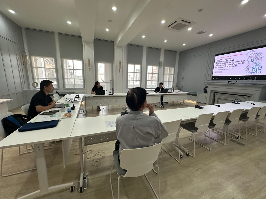 The examination formed an essential part of the graduate academic evaluation process and included the presentation of the independent study entitled “Spatiotemporal Epidemiology and Associated Risk Factors of Childhood Cerebral Palsy in Thailand, 2013–2023,” presented by Mr. Chanapong Lertpanyawattanakul.